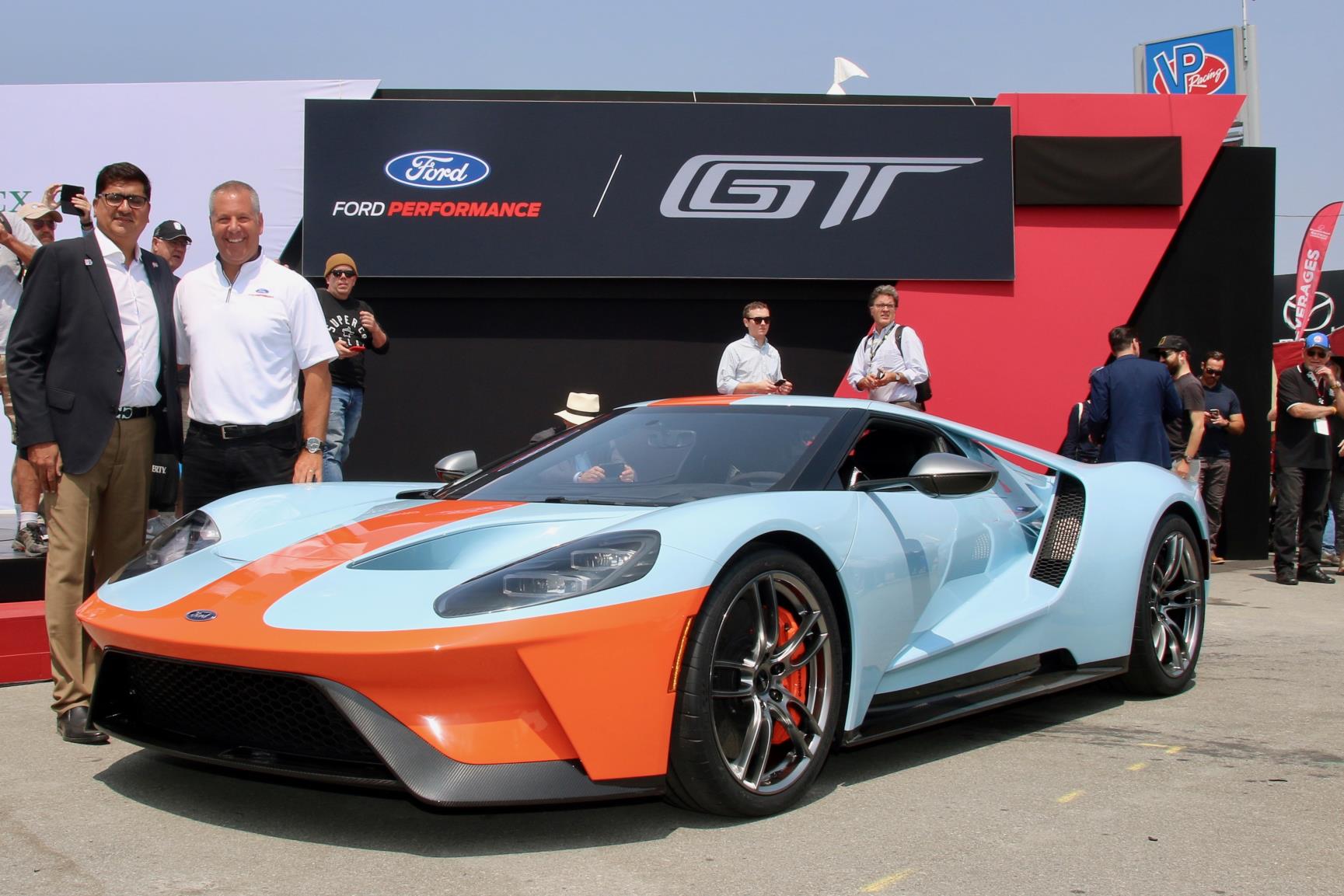 Aug. 29, 2018, Monterey California – Gulf is extremely proud in 2018 to be celebrating the 50th anniversary of its first Le Mans win, with the legendary Ford GT40, and, as a fitting climax to these celebrations, Gulf has joined with Ford to produce the new Ford GT ’68 Heritage edition for the 2019 and 2020 model years. The Heritage Blue with Heritage Orange paint scheme honours the Gulf Oil-sponsored Ford GT40 – chassis #1075 – that won back-to-back 24 Hours of Le Mans in 1968 and 1969.